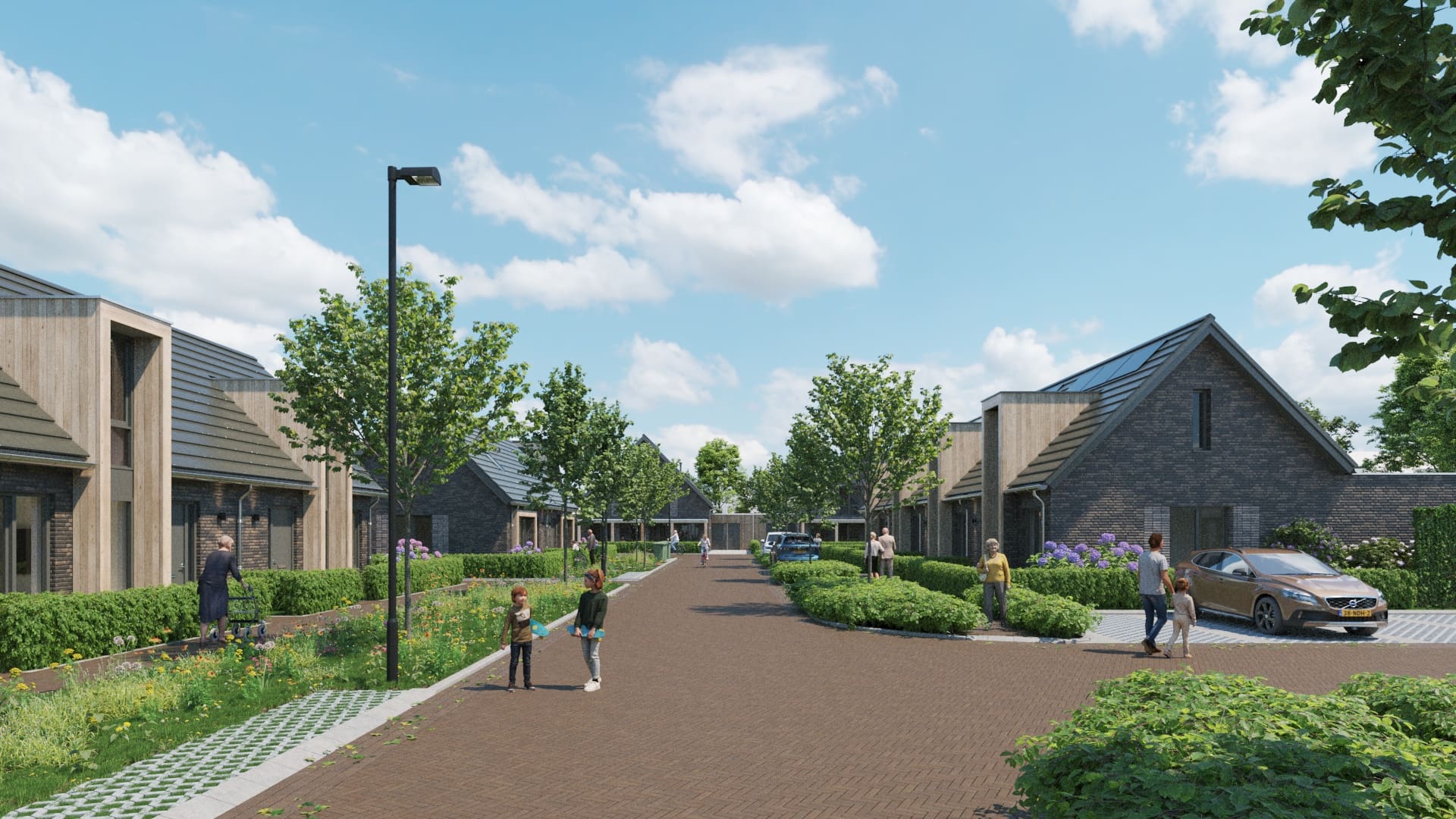 Of je nu kiest voor levensloopbestendig tussen, hoek, twee-onder-een-kap of een vrijstaande woning elke woning is met zorg ontworpen. Er is veel variatie in gevels, kleuren en dakvormen, maar de stijl blijft herkenbaar en in harmonie. Houten accenten, natuurlijke materialen en een groene inrichting geven het hofje karakter én samenhang.